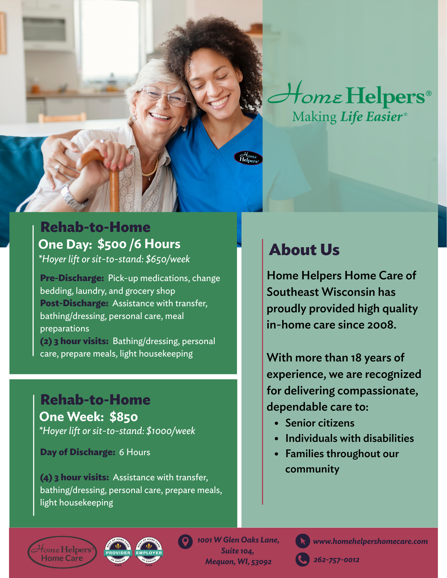 The Mequon, WI branch of Home Helpers needed professionally designed marketing materials but lacked direct support from their corporate office. I stepped in to define a clear visual direction while maintaining brand consistency.